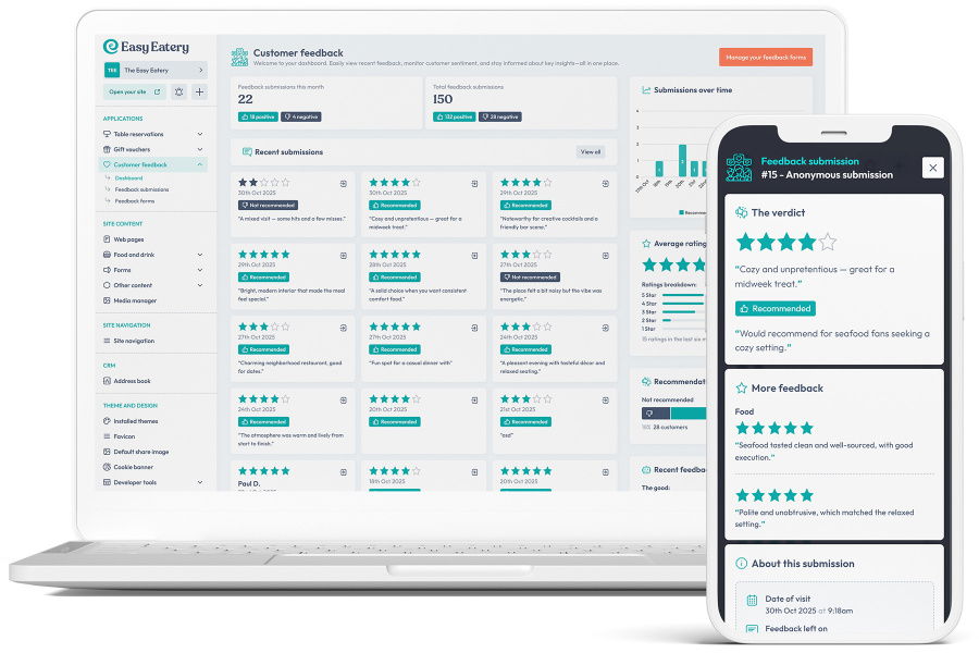 Easy Eatery's feedback tools make collecting customer insights effortless. With a customisable feedback form, detailed rating systems, and support for anonymous responses, you can easily understand how your venue is perceived.